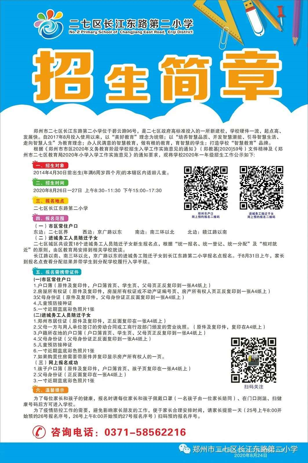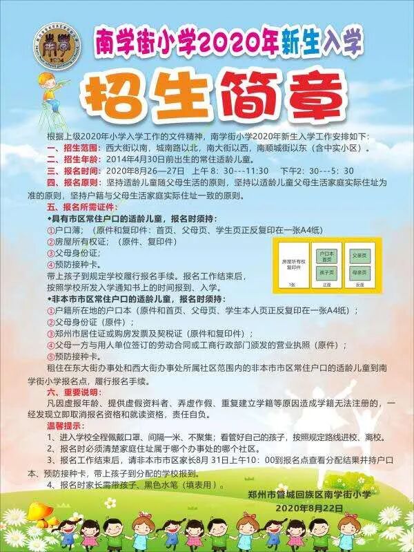 今年郑州市区小学入学报名方式有变,8月17日-18日为网上报名,8月26日-27日为线下报名。 为方便更多家长了解小学报名流程和划片范围,我们搜集了郑州超过100所热门小学招生简章。 大部分信息都来源学校官方微信,欢迎大家留言,留下更多小学的招生简章信息。 篇幅较长,可直接拉直各自关注的区域。