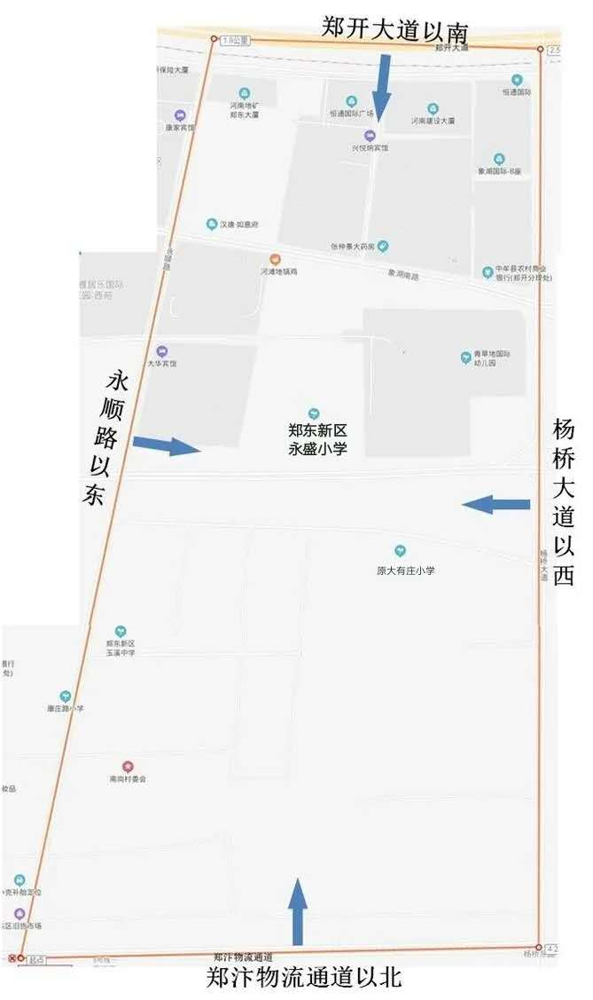 西:自东大街和管城街交叉口起,沿管城街向北,过商城路,再沿管城西街向北至管城后街。